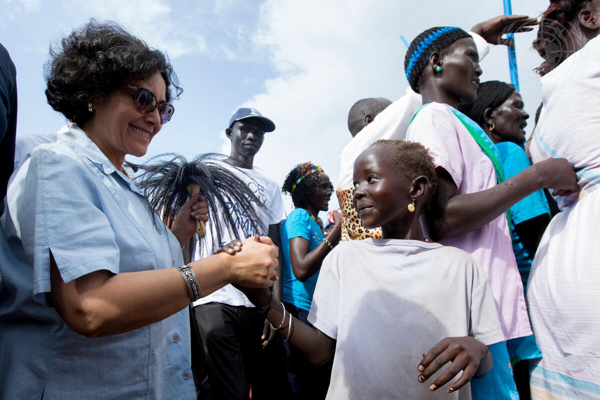 Irina Bokova, Director-General of the UN Educational, Scientific and Cultural Organization (UNESCO); and Leila Zerrougui, Special Representative of the Secretary-General for Children and Armed Conflict; along with actor Forest Whitaker, who is UNESCO Goodwill Ambassador and Founder and CEO of the Whitaker Peace and Development Initiative, visited one of the Protection of Civilians (POC) camps at the UN compound in Juba. Tents at the camp serve as makeshift homes to a population of more than 30,000 people displaced by conflict and ethnic strife in the South Sudanese capital Juba. Strengthening the protection of children affected by armed conflict was one of the points of focus for the 22-24 June joint visit to South Sudan.