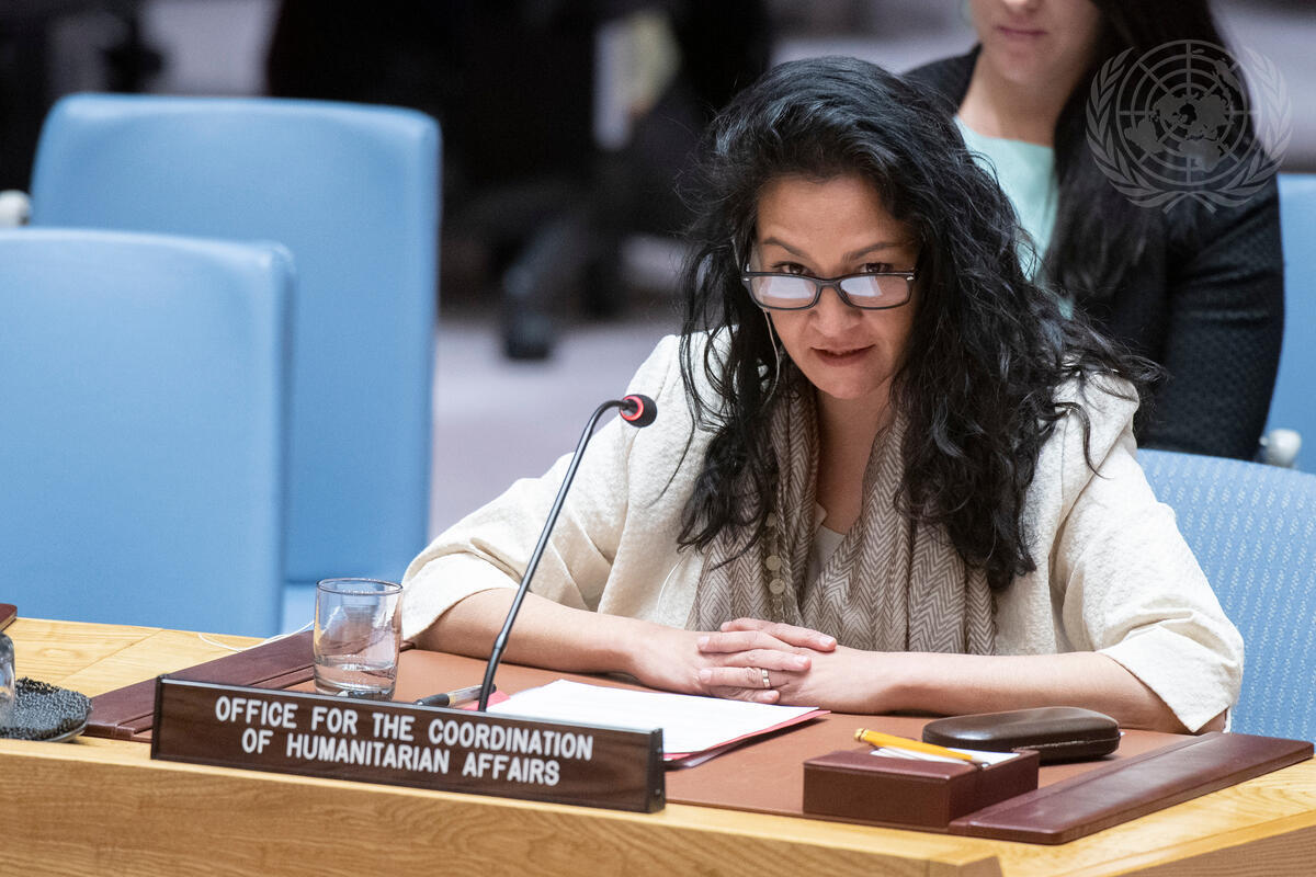 Reena Ghelani, Director of the Operations and Advocacy Division of the Office for the Coordination of Humanitarian Affairs (OCHA), briefs the Security Council meeting on the situation in the Middle East (Syria).