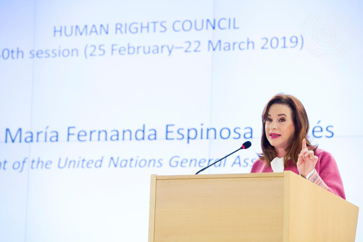 María Fernanda Espinosa Garcés, President of the seventy-third session of the General Assembly, makes remarks at the opening of the 40th session of the Human Rights Council.