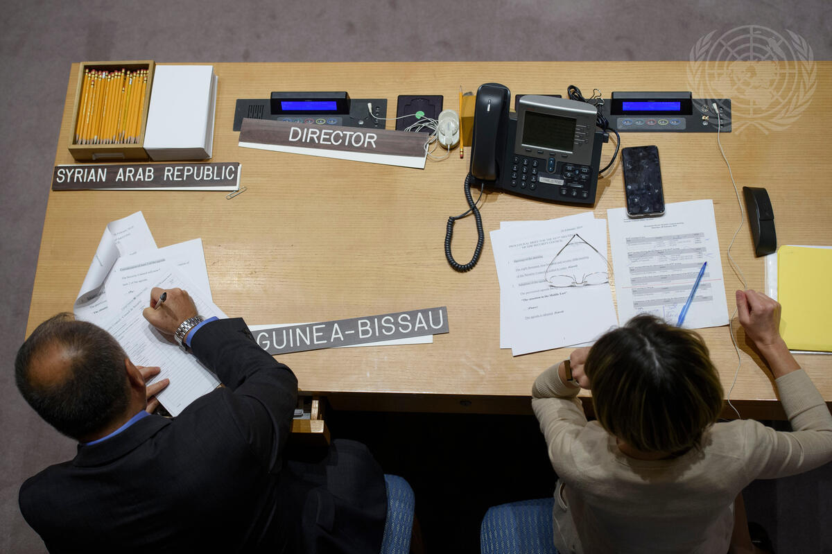A view of conference officers at work during the Security Council meeting on the situation in Guinea-Bissau. The meeting was followed by one on the situation in the Middle East (Syria).