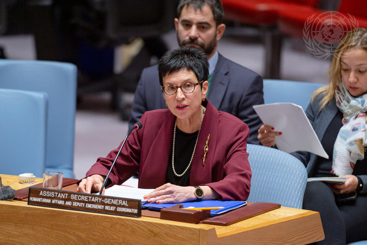 Ursula Mueller, Assistant Secretary-General for Humanitarian Affairs and Deputy Emergency Relief Coordinator in the Office for the Coordination of Humanitarian Affairs (OCHA), briefs the Security Council during a meeting on the situation in Syria.
