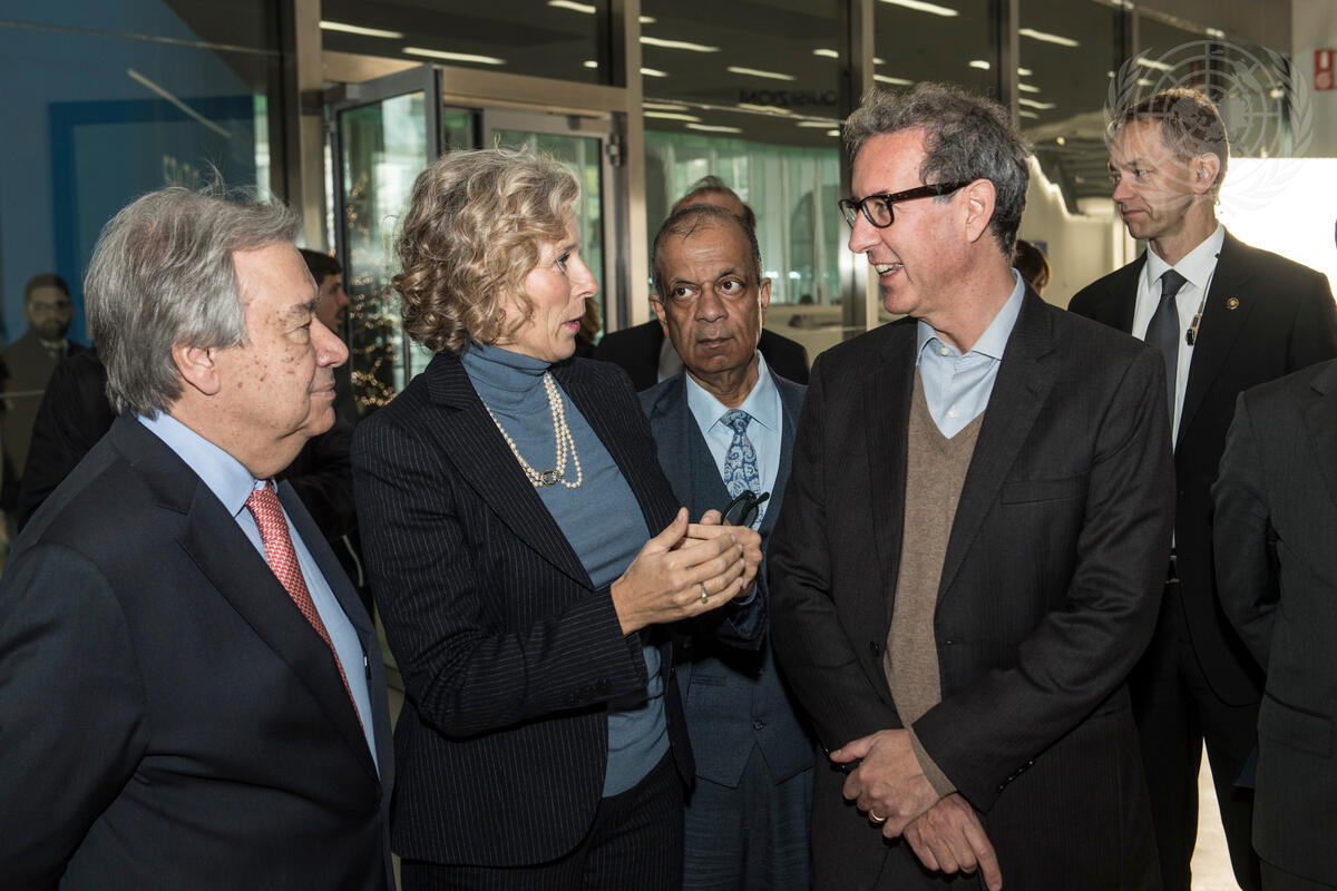 Secretary-General António Guterres (left) visits MAXXI, the National Museum of 21st Century Arts in Rome, with Giovanna Melandri (second from left), President of the Museum. In the centre is Atul Khare, Under-Secretary-General for Operational Support.