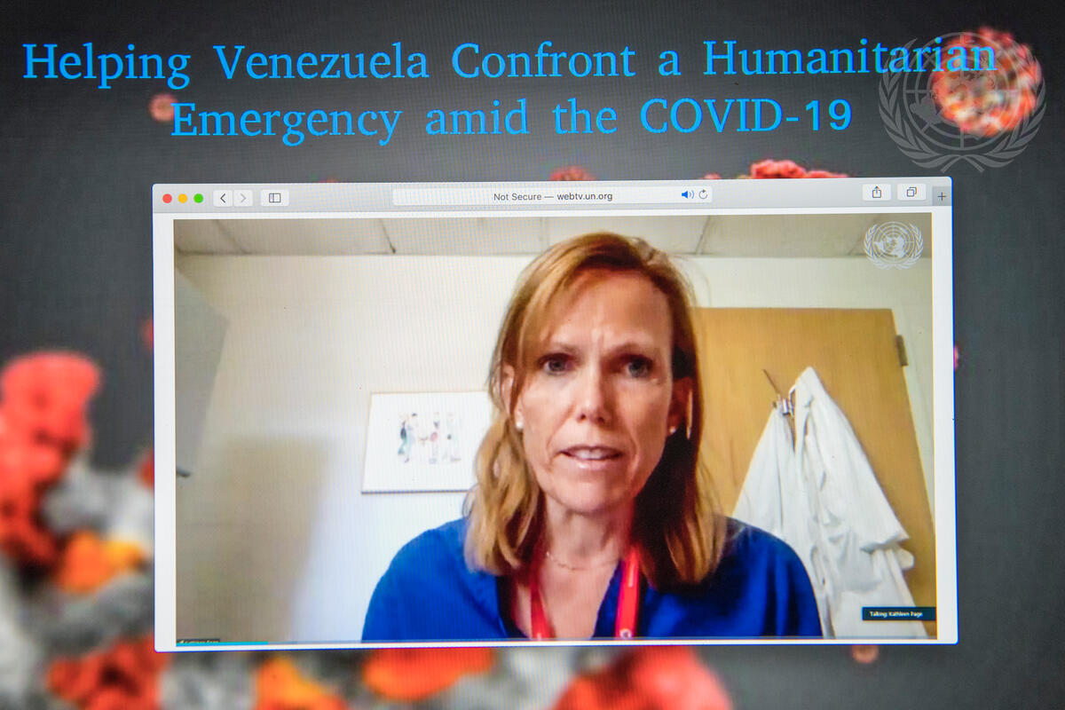 Dr. Kathleen Page of Johns Hopkins University, briefs the virtual event on""Helping Venezuela Confront a Humanitarian Emergency amid the COVID-19 Pandemic"".