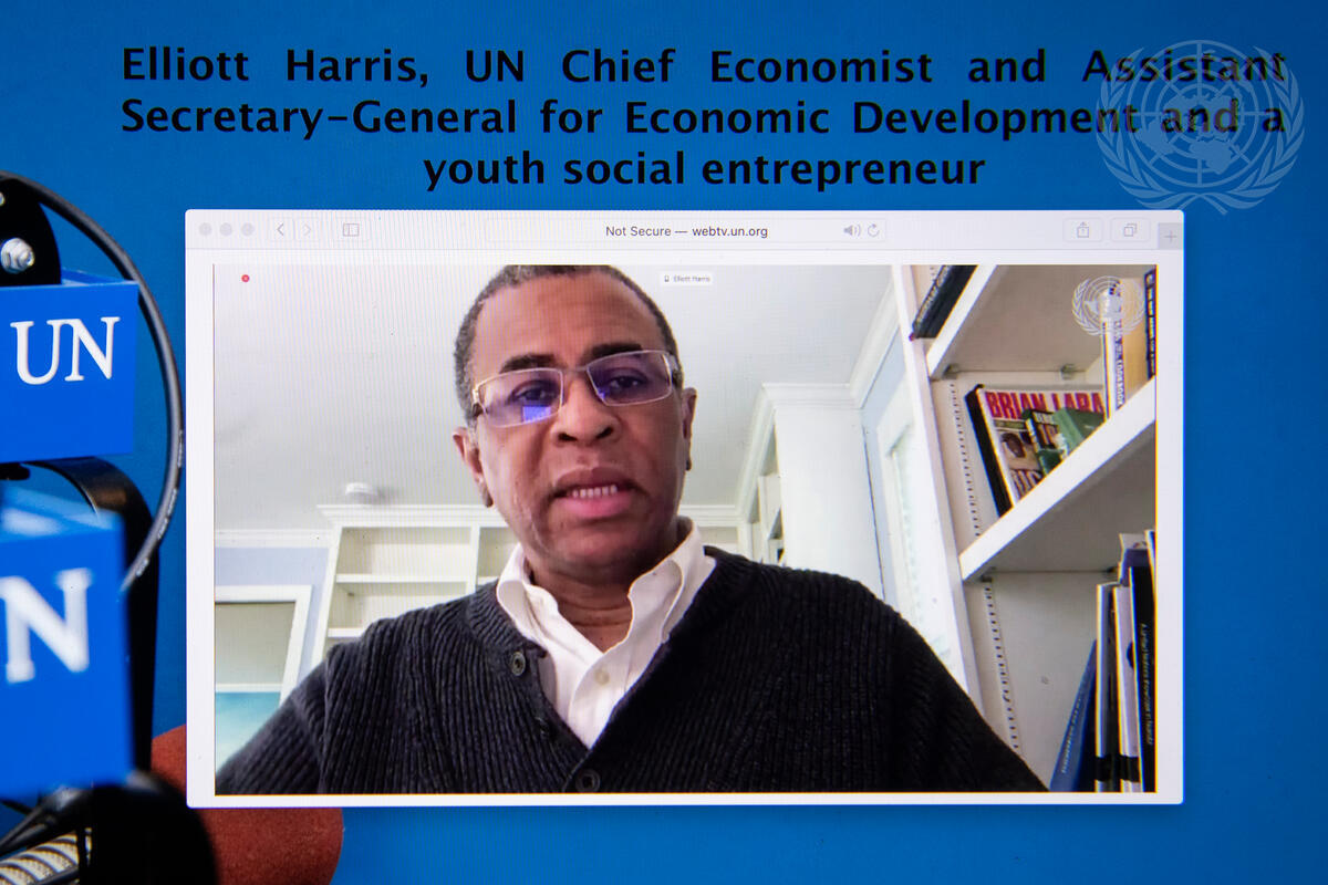 Elliott Harris, UN Chief Economist and Assistant Secretary-General for Economic Development, briefs reporters on the 2020 World Youth Report: ""Youth Social Entrepreneurship and the 2030 Agenda"" together with and a youth social entrepreneur.