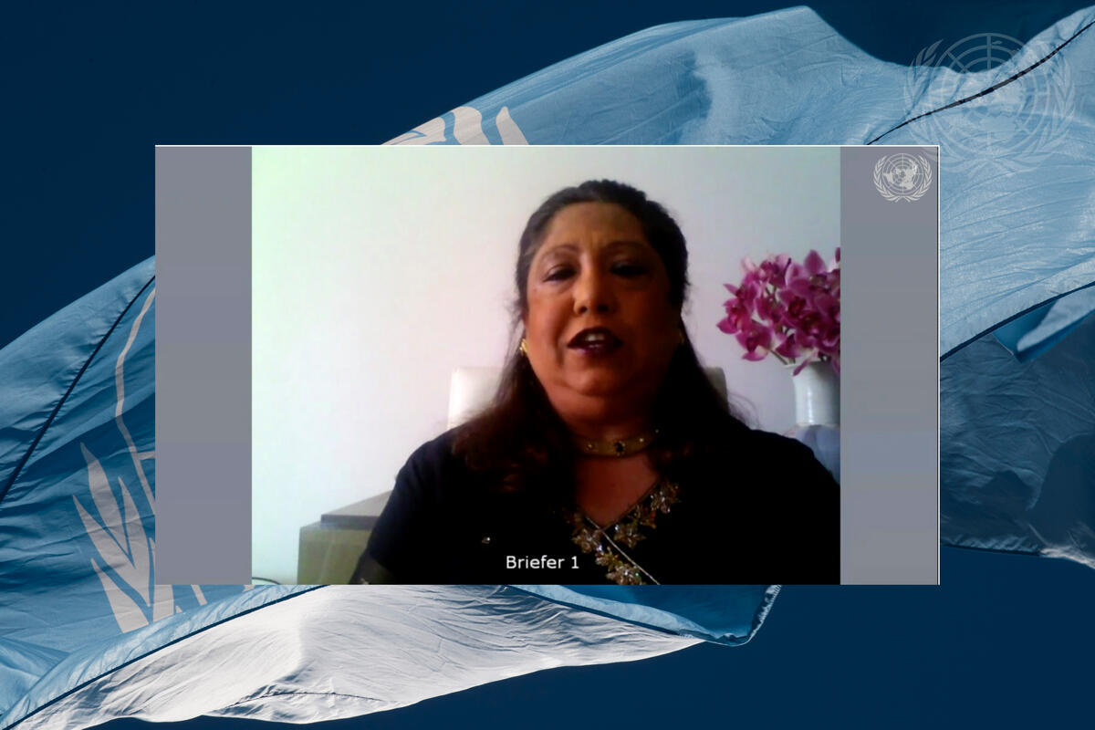 Pramila Patten, Special Representative of the Secretary-General on Sexual Violence in Conflict, briefs the Security Council members during an open videoconference on women, peace and security: sexual violence in conflict.
