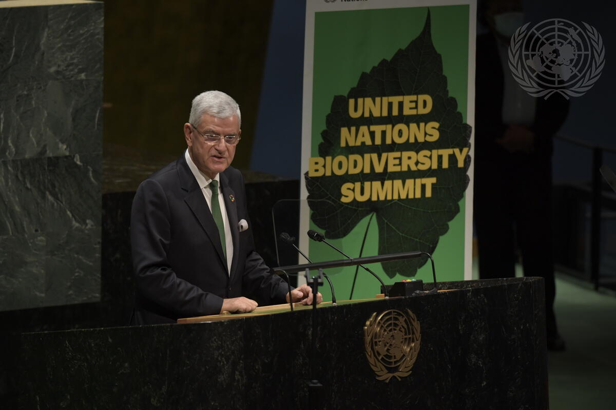 Volkan Bozkir, President of the seventy-fifth session of the United Nations General Assembly, delivers closing remarks to the United Nations Summit on Biodiversity.