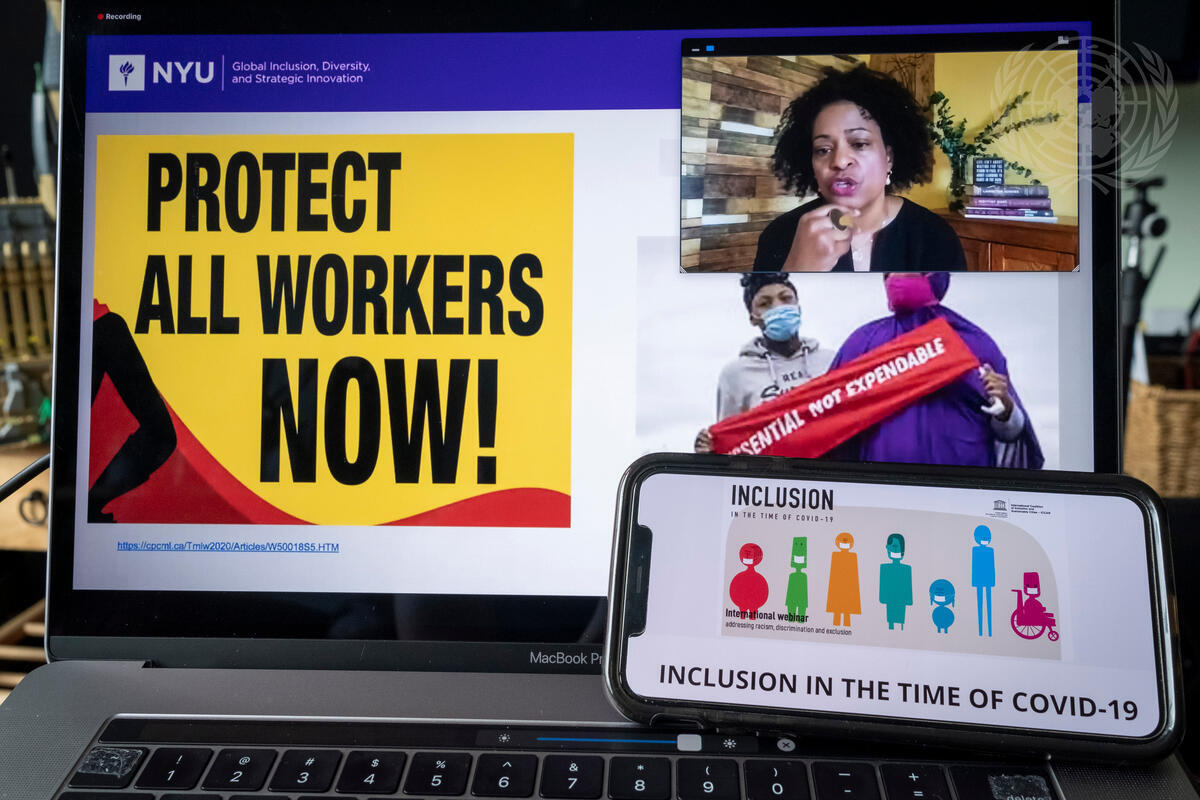 Lisa Coleman, Senior Vice President for Global Inclusion, Diversity and Strategic Innovation at the New York University, speaks during the virtual event ""Inclusion in the Time of COVID-19: Confronting Slavery's Legacy of Racism Together"".