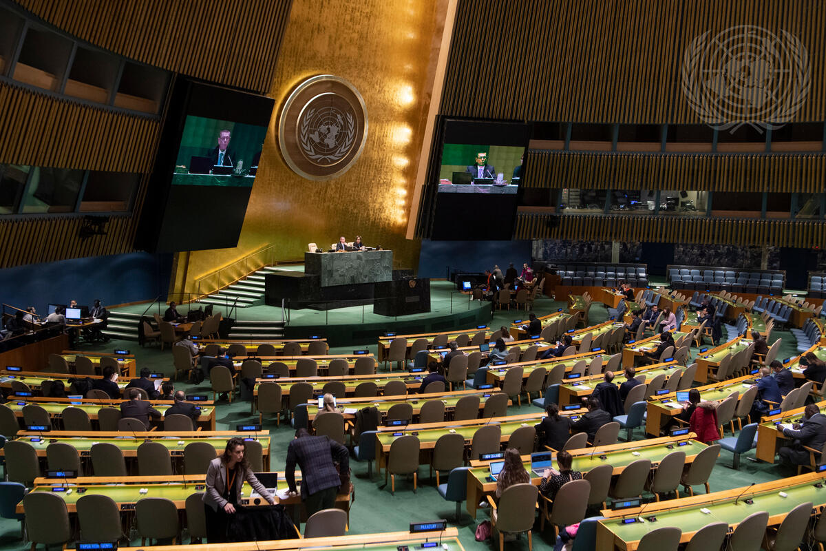 A wide view of the General Assembly meeting on the question of equitable representation on and increase in the membership of the Security Council and other matters related to the Security Council.