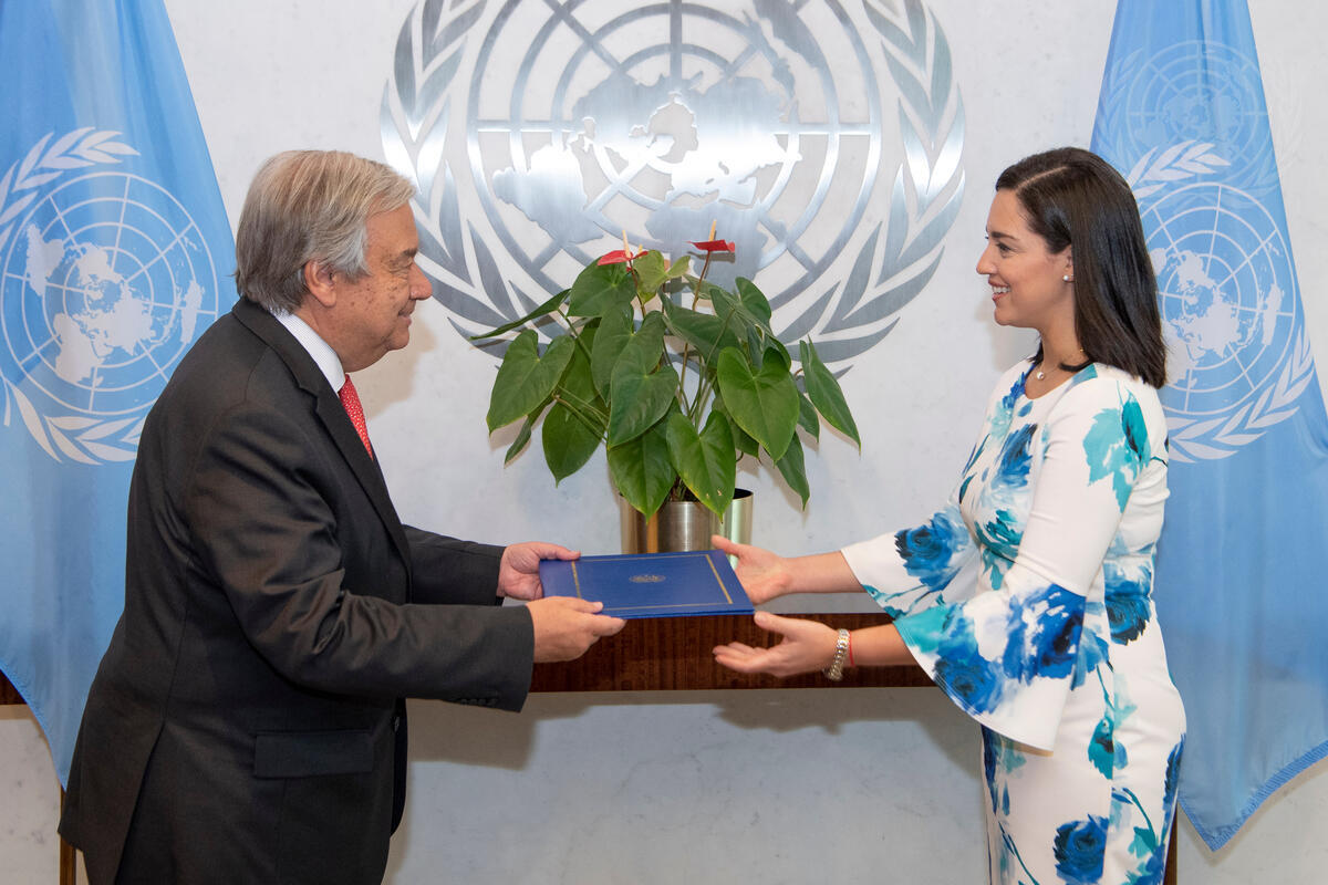 El Salvador to the United Nations, presents her credentials to Secretary-General António Guterres.
