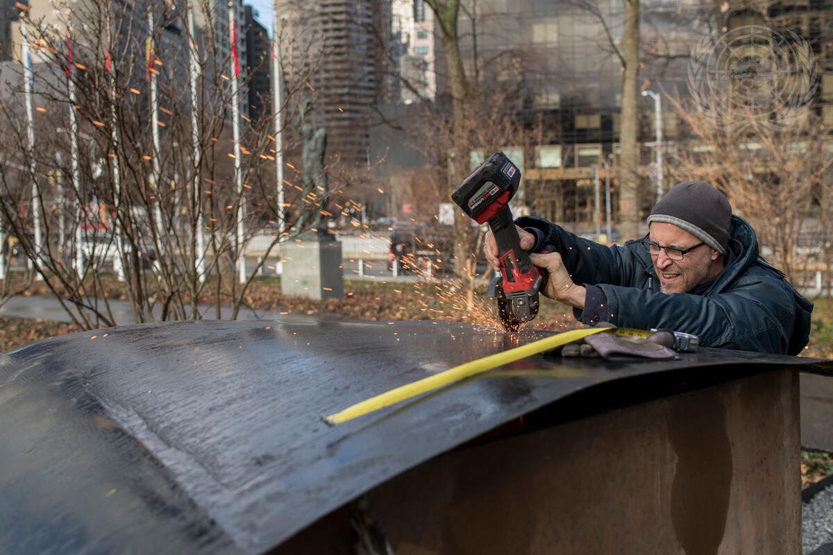 Construction of Memorial of Haiti 2010 Earthquake at UN Headquarters