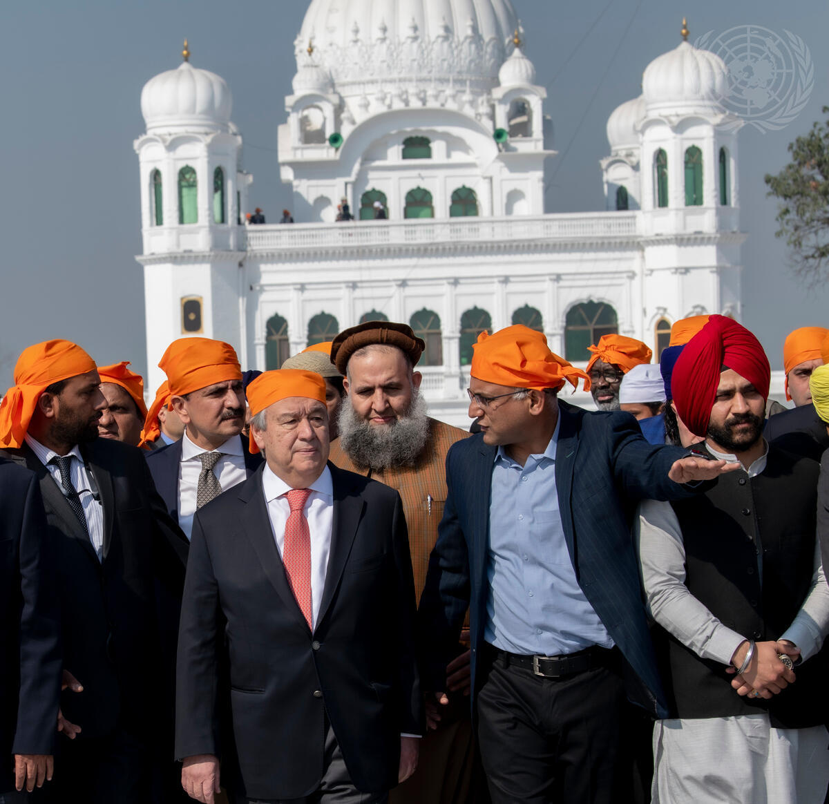 The Secretary-General (centre left) visits the Gurdwara Kartarpur Sahib and views the newly inaugurated Kartarpur Corridor, a border corridor between the Pakistan and India, connecting the Sikh shrines of Gurdwara Darbar Sahib Kartarpur in Punjab, Pakistan and Dera Baba Nanak Sahib in Punjab, India. It allows religious devotees from India to visit the Gurdwara in Kartarpur from the Pakistan-India border, without a visa.