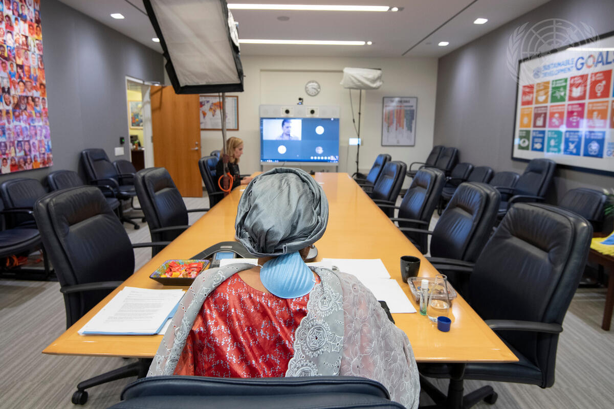 Deputy Secretary-General Amina Mohammed (front) participates in a briefing to member states on the United Nations development system’s response to COVID-19 socio-economic impact.