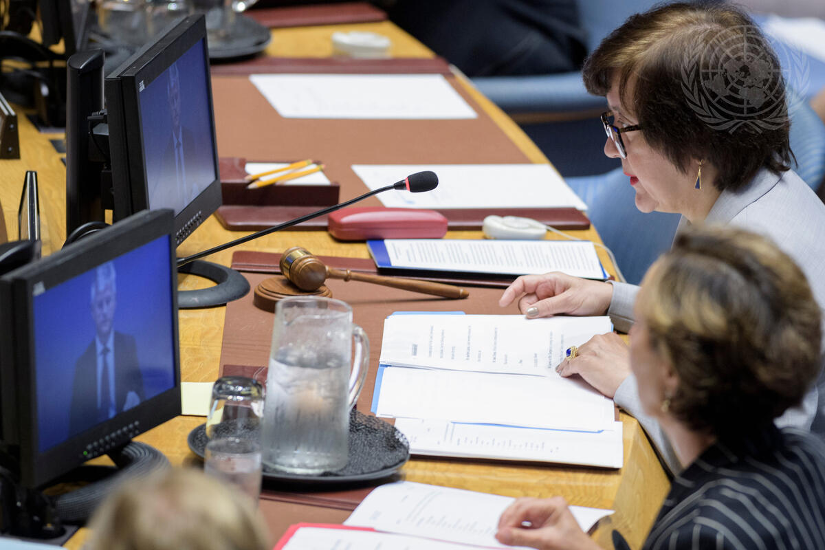 Joanna Wronecka, Permanent Representative of the Republic of Poland to the United Nations and President of the Security Council for the month of August, chairs the Security Council meeting on the situation in the Sudan and South Sudan. On the screen is Jean-Pierre Lacroix, Under-Secretary-General for Peace Operations.
