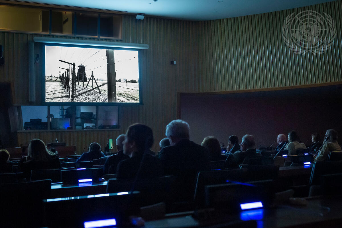 A view of the room during the screening of the film "School of Executioners" at UN headquarters to commemorate the 75th anniversary of the liberation of Auschwitz.