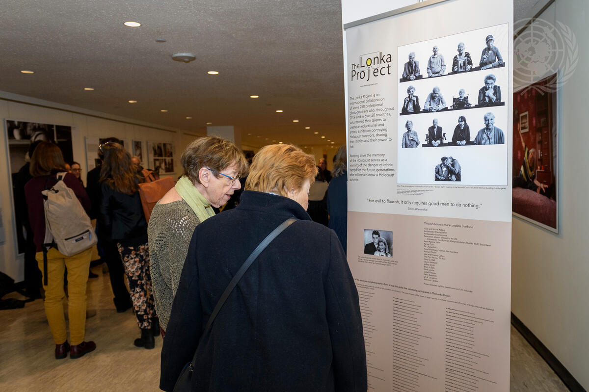Visitors attend the opening of the exhibit "Lonka Project". The Lonka Project is a photographic tribute to the last Holocaust survivors that are still with us today. Some 250 professional photographers from some 24 countries have volunteered to participate and showcase their photos.