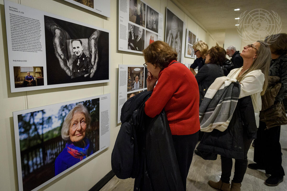 Visitors attend the opening of the exhibit "Lonka Project". The Lonka Project is a photographic tribute to the last Holocaust survivors that are still with us today. Some 250 professional photographers from some 24 countries have volunteered to participate and showcase their photos.