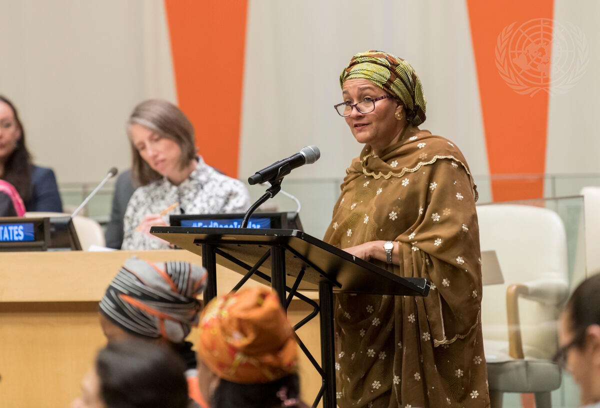 Deputy Secretary-General Amina J. Mohammed speaks at the event to commemorate the 10-Year Anniversary of the Establishment of the Mandate on Sexual Violence in Conflict.