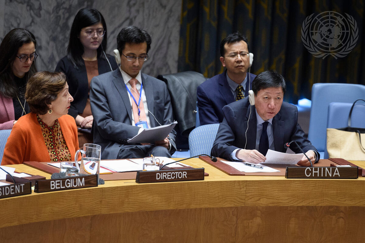 Wu Haitao (right), Deputy Permanent Representative of the People’s Republic of China to the UN, addresses the Security Council.