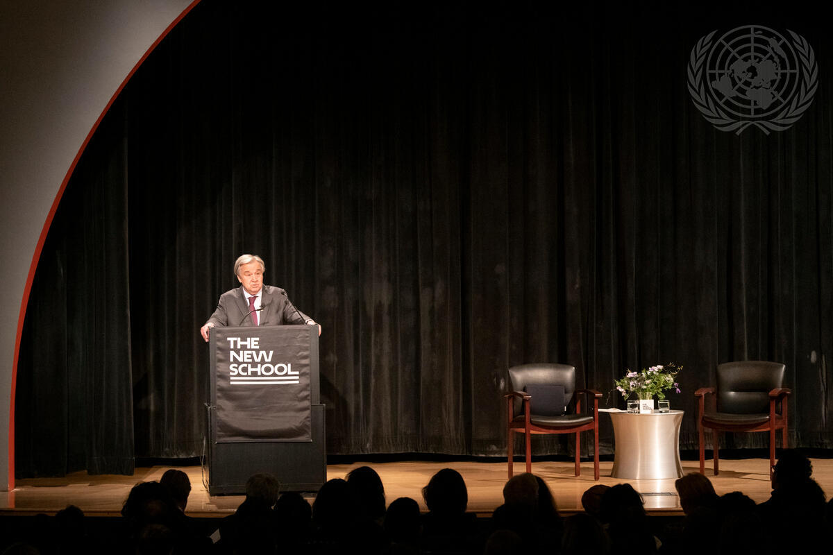 Secretary-General António Guterres delivers remarks on the topic of “Women and Power” at the New School in New York. He outlined five areas in which closing the gender power gap will benefit everyone and transform our world.