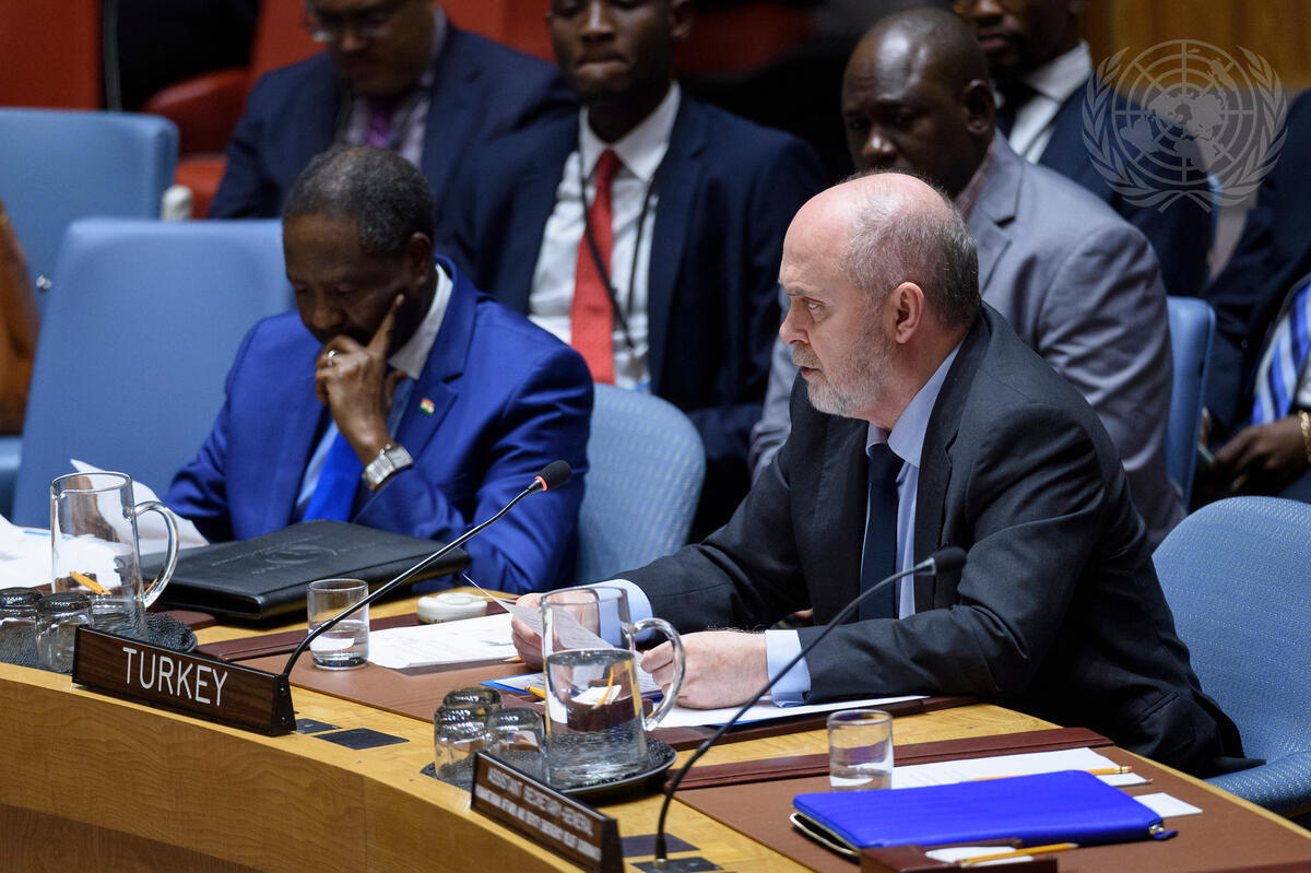Feridun H. Sinirlioglu (right), Permanent Representative of Turkey to the United Nations, addresses the Security Council meeting on Syria.