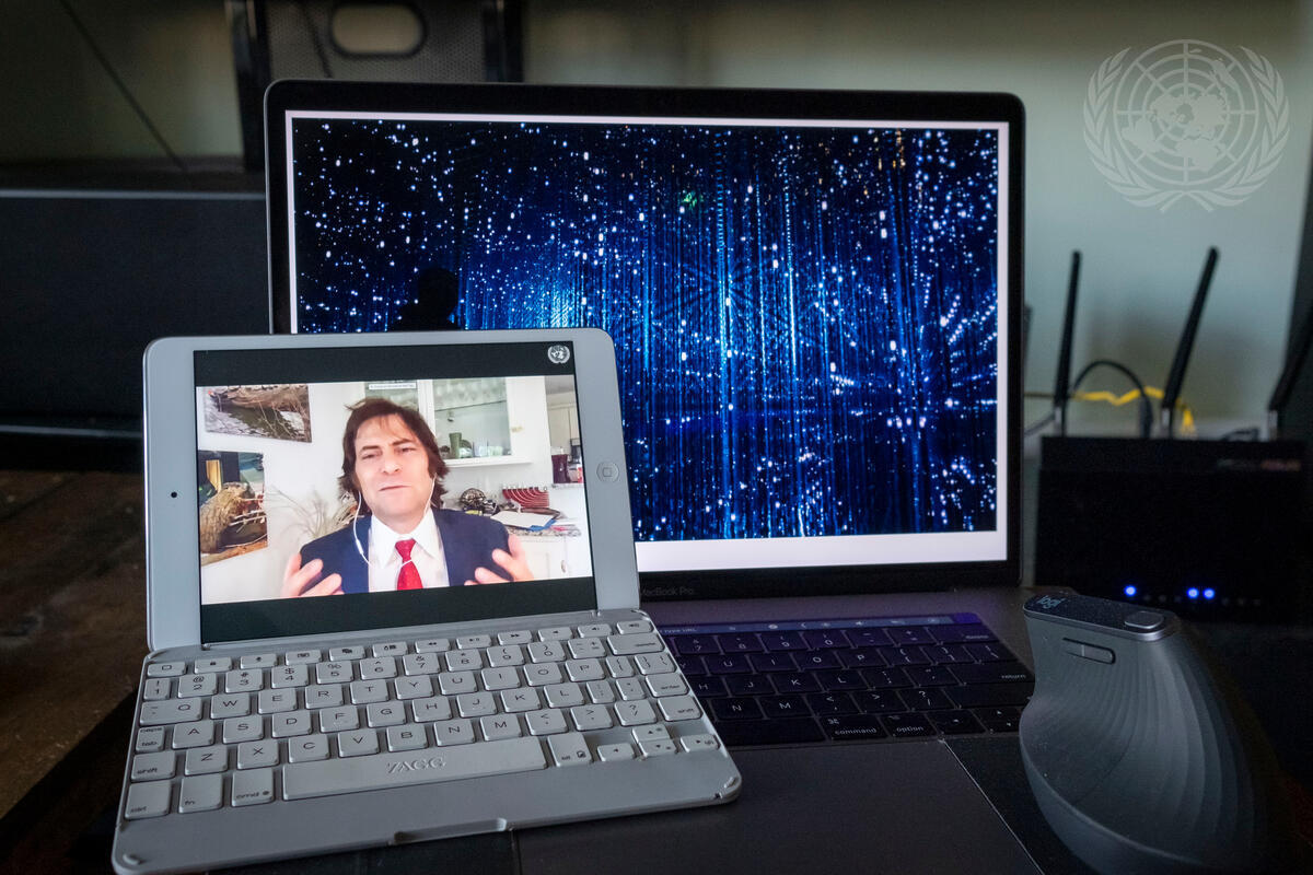 Max Tegmark, President of the Future of Life Institute, speaks during the launch of the Secretary-General's Roadmap for Digital Cooperation on the theme ""Dialogue on implementation of the Roadmap: The Way Forward: Key Areas III and IV"".