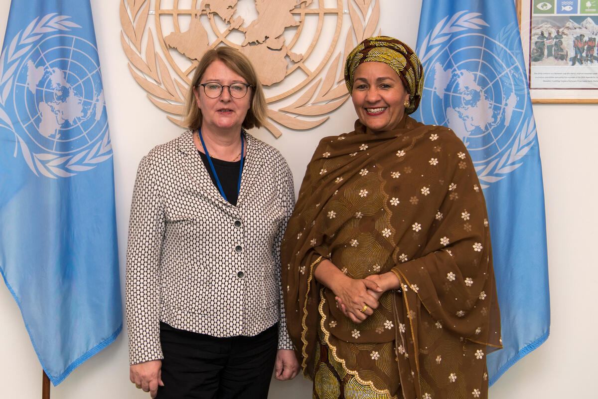Deputy Secretary-General Amina J. Mohammed (right) meets with Antje Leendertse, State Secretary at the Federal Foreign Office of Germany.