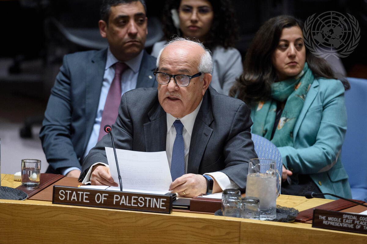 Riyad H. Mansour, Permanent Observer of the State of Palestine to the United Nations, addresses the Security Council on the situation in the Middle East, including the Palestinian question.