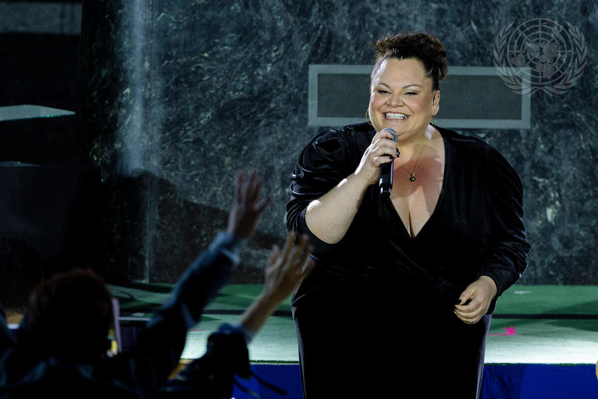 Keala Settle performs at the high-level meeting of the General Assembly on the occasion of the thirtieth anniversary of the adoption of the Convention on the Rights of the Child.