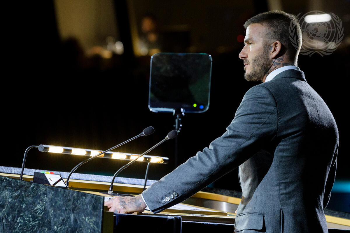 David Beckham, Goodwill Ambassador for UNICEF, speaks at the high-level meeting of the General Assembly on the occasion of the thirtieth anniversary of the adoption of the Convention on the Rights of the Child.