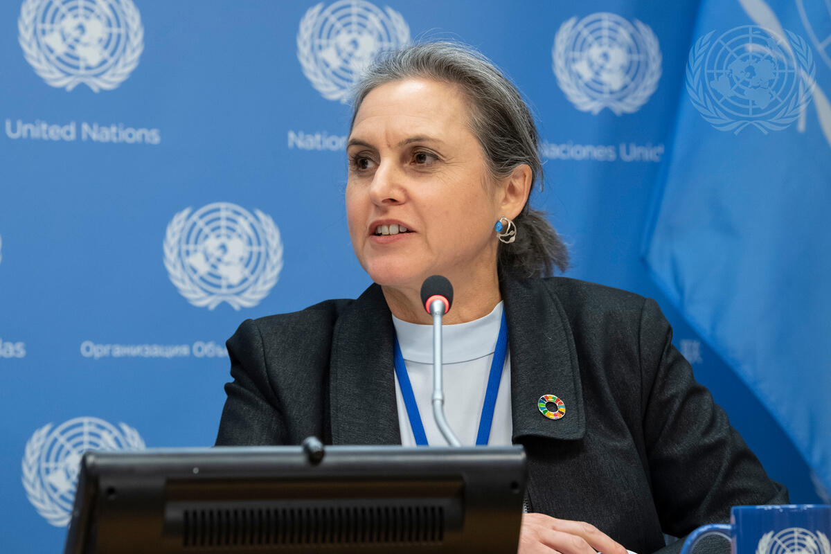 Karen Sack, Managing Director of Ocean Unite, speaks at the press briefing on the UN Ocean Conference, to be held during 2 to 6 June 2020 in Lisbon, Portugal.