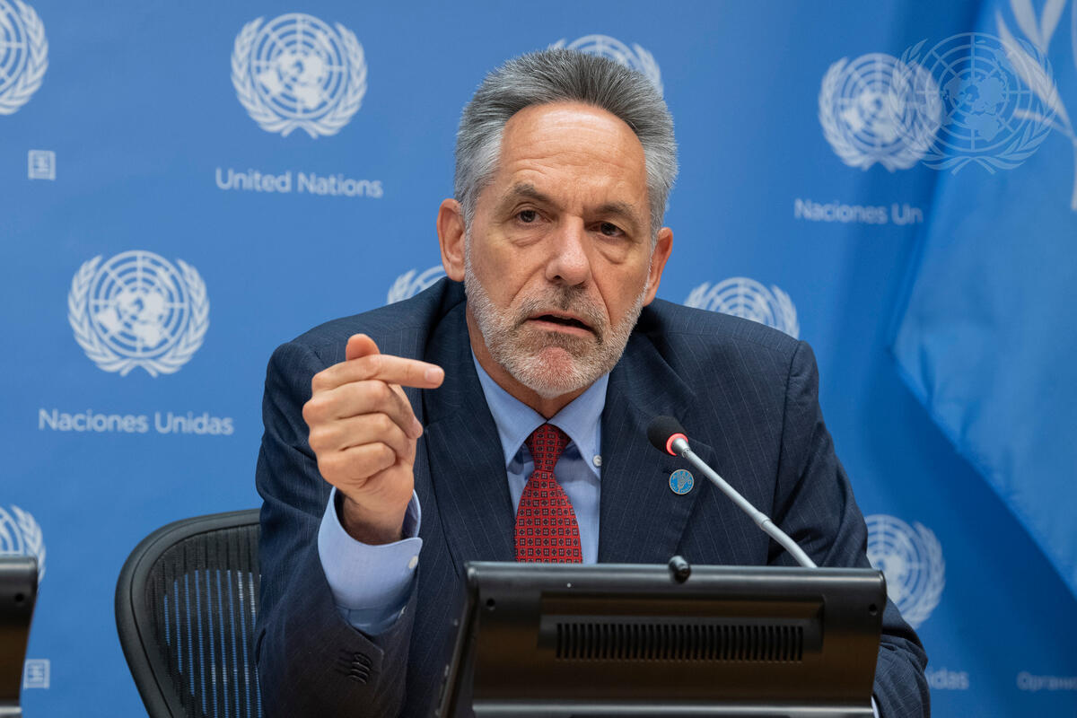 Keith Cressman, Senior Locust Forecasting Officer at the Food and Agricultural Organization, speaks at the press conference on the Desert Locust upsurge in the Greater Horn of Africa. With him are (not pictured) Mark Lowcock, Under-Secretary-General for Humanitarian Affairs and Emergency Relief Coordinator, and Dominique Burgeon, Director of Emergencies of the Food and Agriculture Organization.