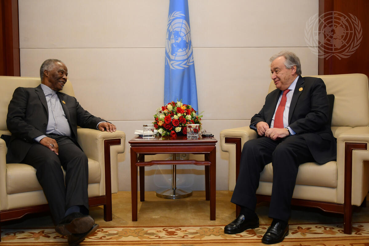 Mr. Guterres (right) meets with Thabo Mbeki, former President of South Africa, in Addis Ababa.