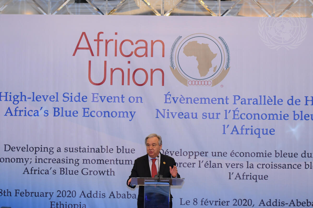 Mr. Guterres addresses a side event on ""Unlocking the full potential of Africa's Blue Economy - A continental strategy for joint action"" held on the side of the 33rd African Union Summit in Addis Ababa.