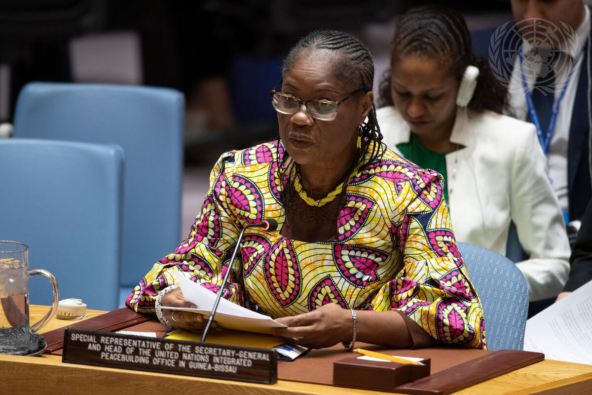 Rosine Sori-Coulibaly, Special Representative for Guinea-Bissau and Head of the United Nations Integrated Peacebuilding Office in Guinea-Bissau (UNIOGBIS), briefs the Security Council meeting on the situation in Guinea-Bissau.