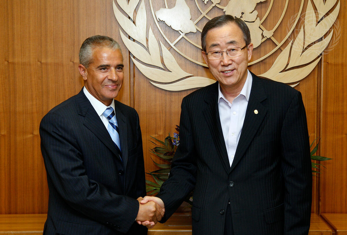 Secretary-General Ban Ki-moon (right) meets with Ahmed Djoghlaf, Executive Secretary of the Convention on Biological Diversity.