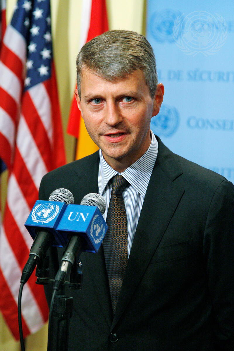 Jean-Pierre Lacroix, Deputy Permanent Representative of France to the United Nations, briefs media following an emergency Security Council meeting on the current crisis in Georgia's region of Ossetia.