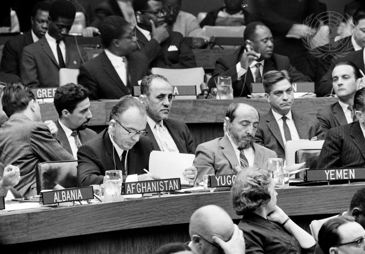 Delegations are bunched up here as the General Assembly continued its general debate in one of the Conference Rooms - due to preparations in the Assembly hall for a memorial ceremony for the late Secretary-General Dag Hammarskjöld and other UN staff members who died ten days ago.