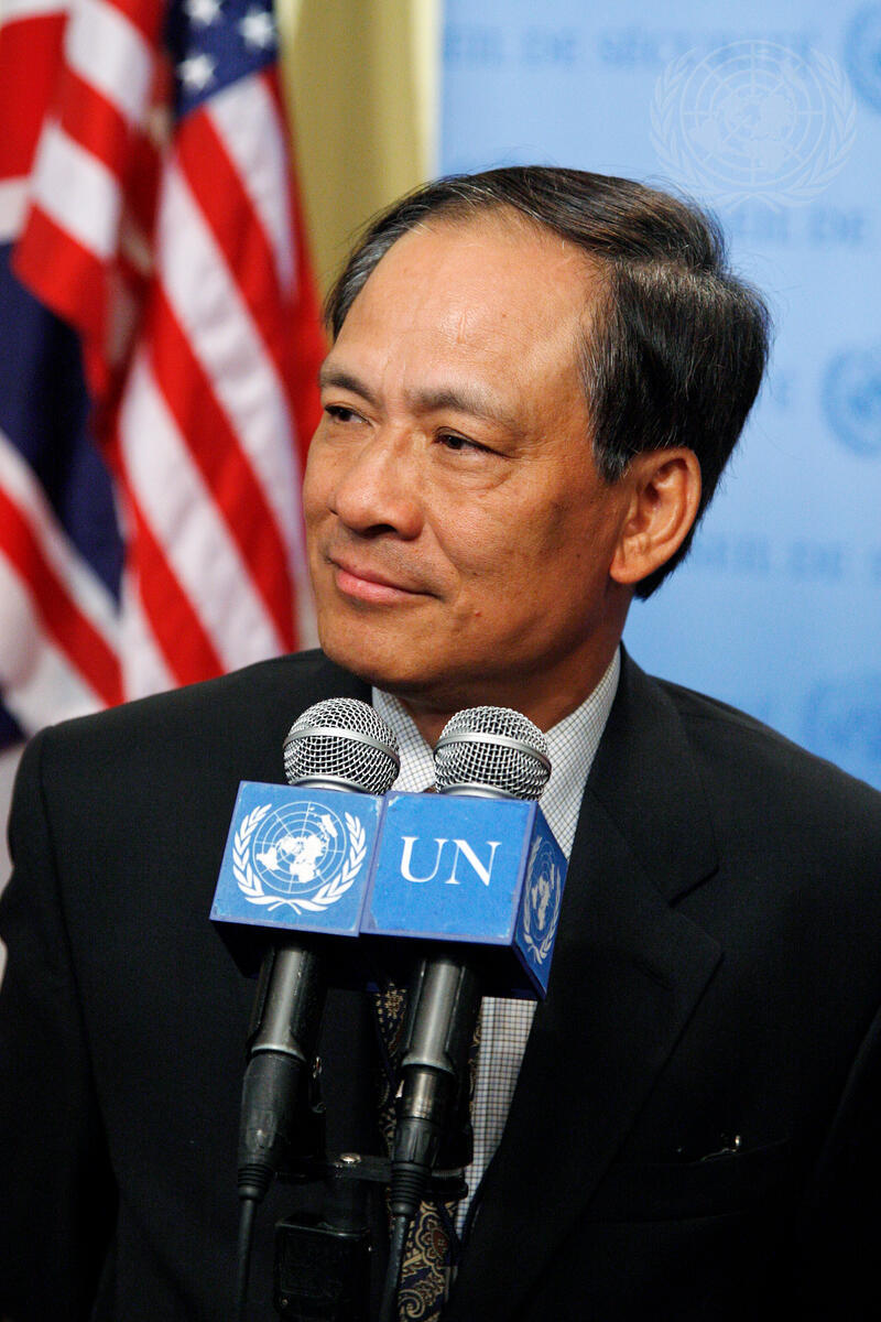 Le Luong Minh, Permanent Representative of Viet Nam to the United Nations and President of the Security Council for July, briefs the press.