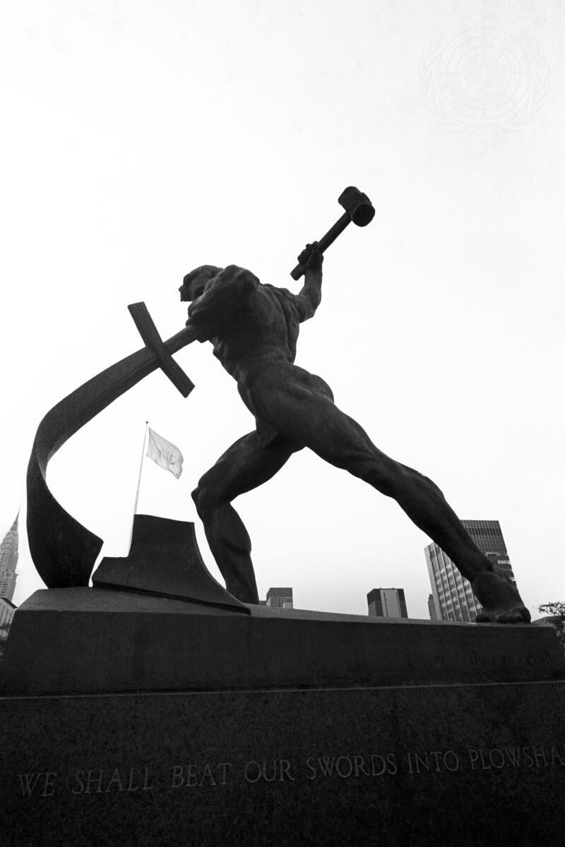 View of Sculpture "Let Us Beat Swords into Ploughshares"