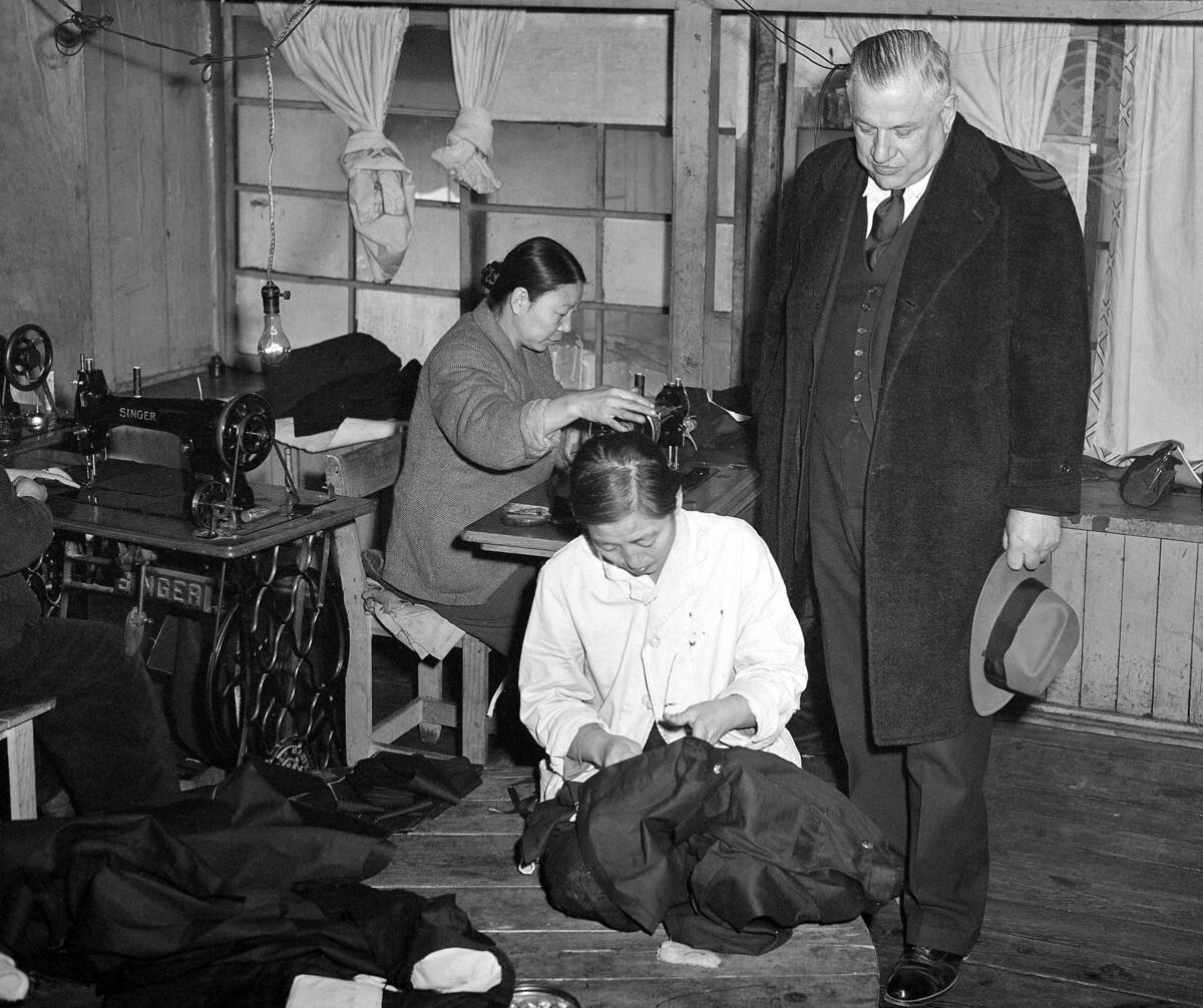 Women mend children's clothing in the ""Sewing Room"" of the orphanage.