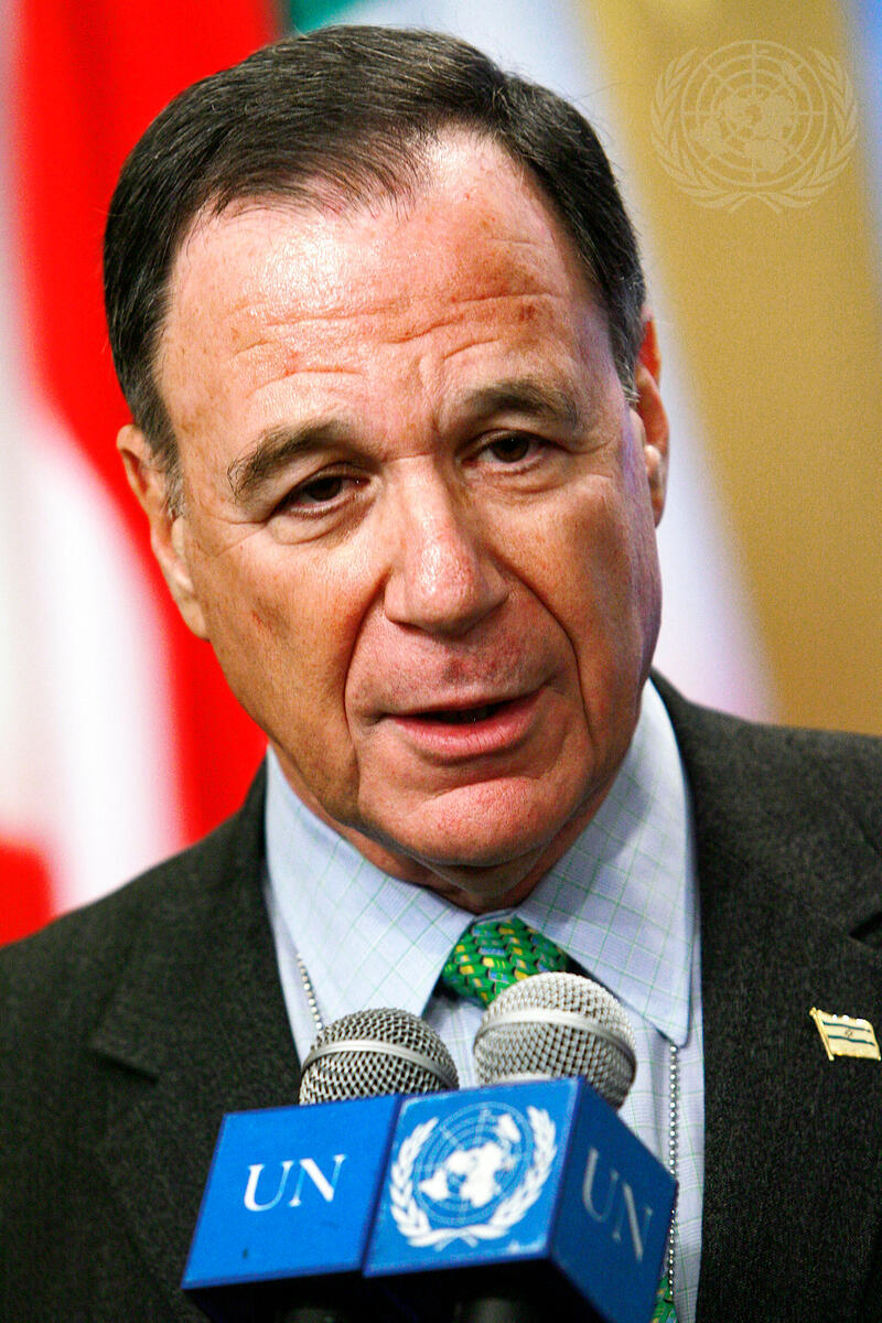 Dan Gillerman, Permanent Representative of Israel to the United Nations, speaks to news reporters outside the Security Council Chamber following a Security Council meeting on the situation in the Middle East, including the Palestinian question.