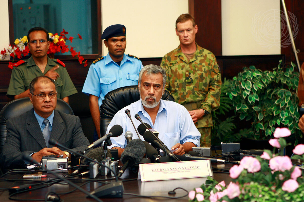 Kay Rala Xanana Gusmão (right), Prime Minister of Timor-Leste, addresses a press conference on the shooting incident that wounded President José Ramos-Horta, and a number of others killed or injured.