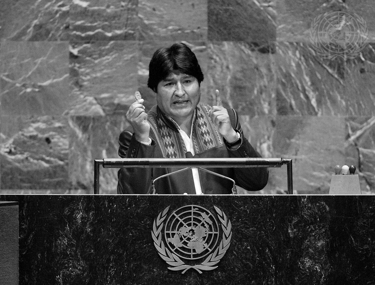 Evo Morales Ayma, President of Bolivia, addresses the general debate of the sixty-first session of the General Assembly, at UN Headquarters in New York.