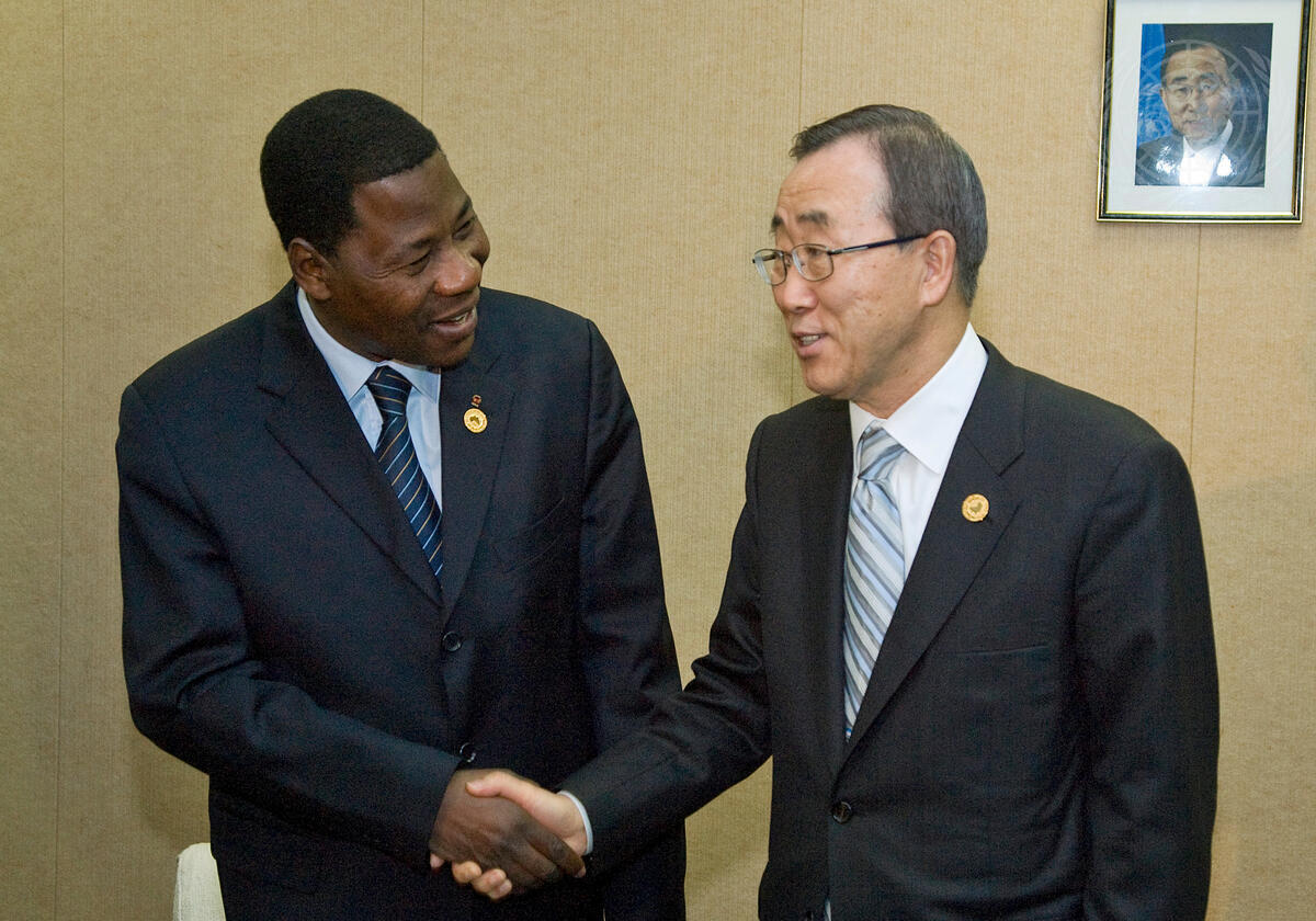 Secretary-General Ban Ki-moon (right) meets with Thomas Yayi Boni, President of the Republic of Benin.