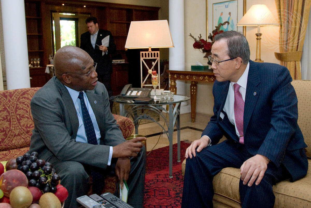 Secretary-General Ban Ki-moon (right), in a meeting with Abdoulie Janneh, Executive Secretary of the United Nations Economic Commission for Africa (ECA).