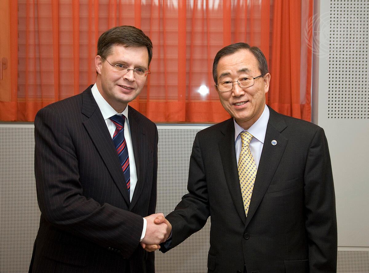 Secretary-General Ban Ki-moon (right) meets with Jan Peter Balkenende, Prime Minister of The Netherlands.