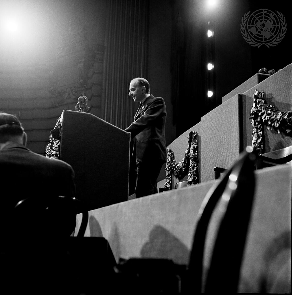 Prof. S.A. Golunsky, delegate from USSR, speaking in the Opera House.