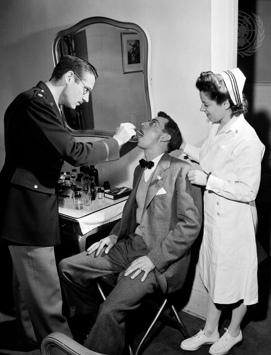 Major T.L. Tyson, Medical Officer for the Conference, in his office at the Fairmont Hotel.