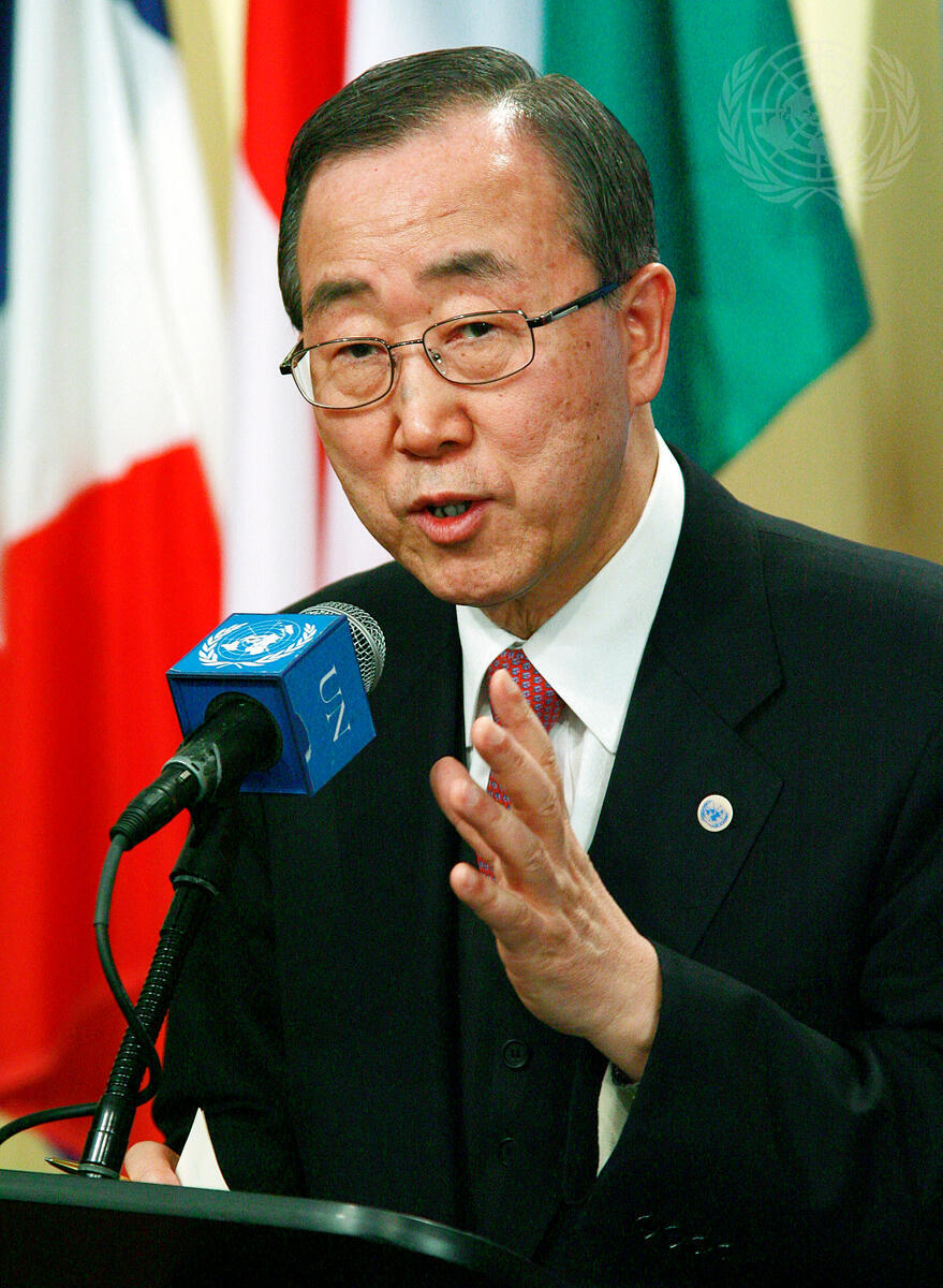 Secretary-General Ban Ki-moon briefs correspondents outside the Security Council Chamber, on the situation in Kenya.