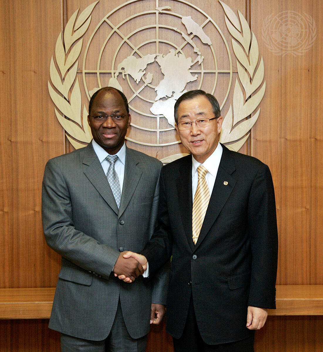 Secretary-General Ban Ki-moon (right) meets with Yipènè Bassolé, Joint United Nations-African Union (UN-AU) Chief Mediator for Darfur.
